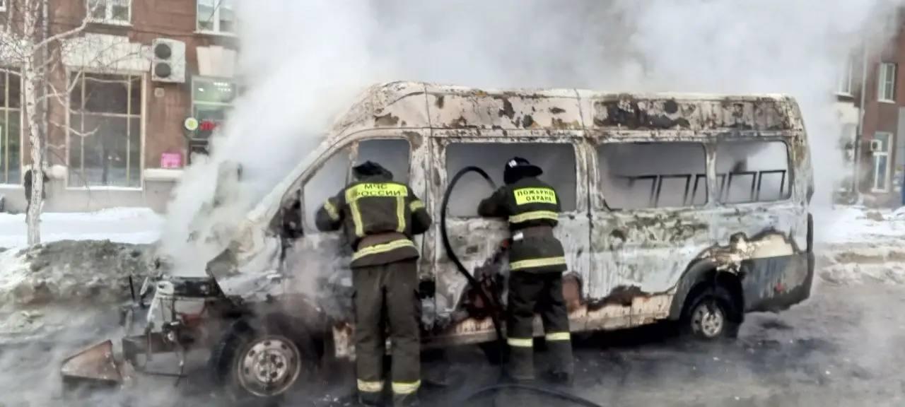 На Комсомольской площади в Орске сгорела маршрутка