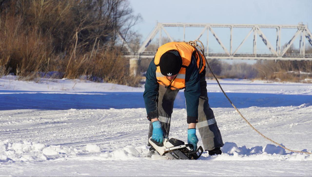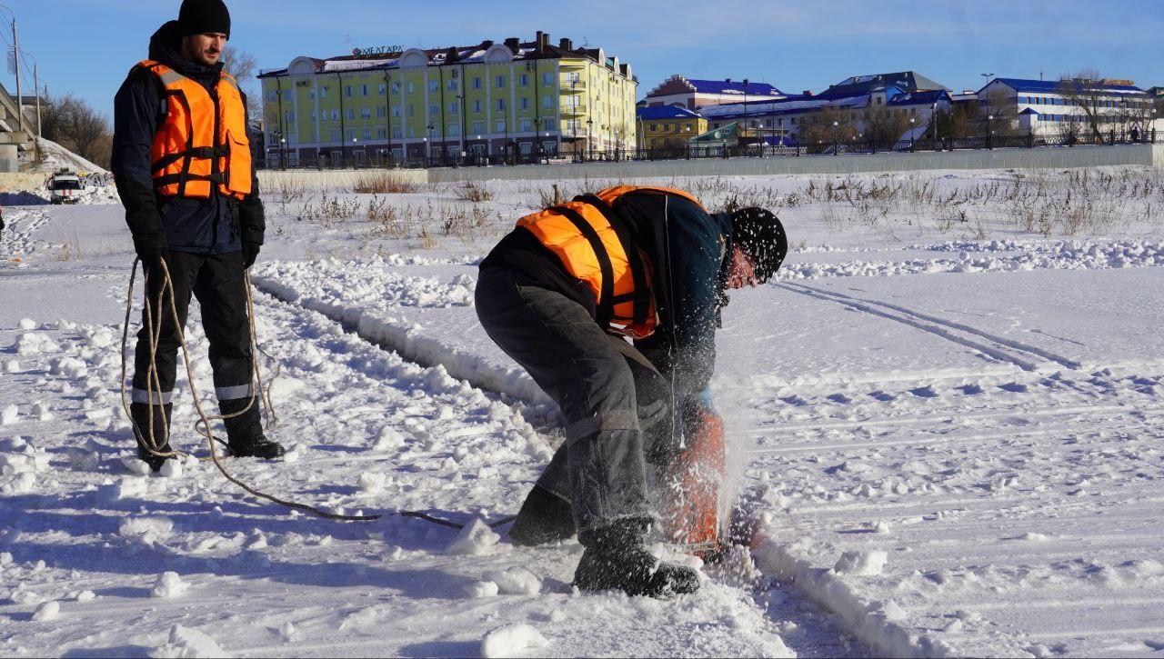 Специалисты МКУ «БиОз» в Оренбурге приступили к распиловке льда на реке Урал в районе автомобильного моста. Под наблюдением городской аварийно-спасательной службы они разделяют ледовый покров на квадраты на расстоянии 10 метров от берега. Все работники прошли инструктаж и обеспечены спасательными жилетами и страховкой.