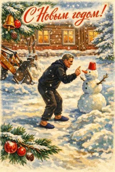 На основе этого случая пользователи начали создавать новогодние открытки с изображением тракториста.